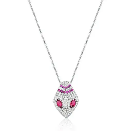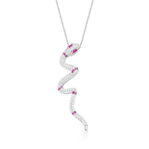 CORRENTE COM PINGENTE DE COBRA ZIRCÔNIA MARSALA BANHADA A RÓDIO