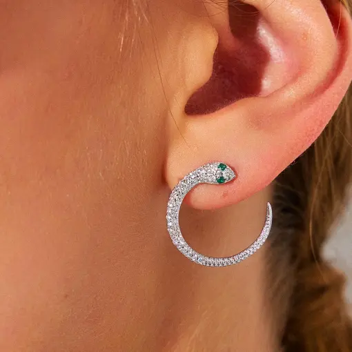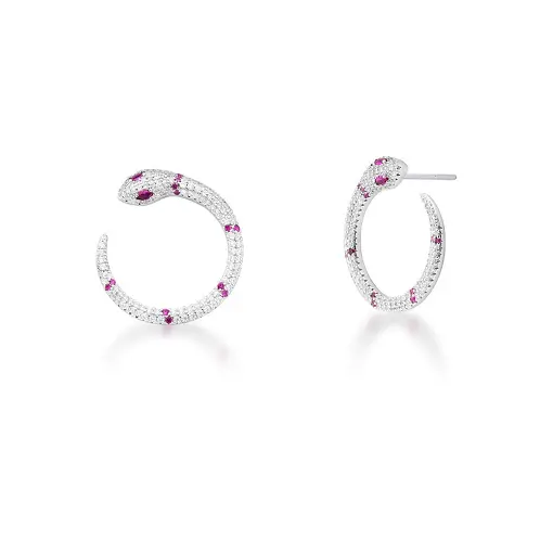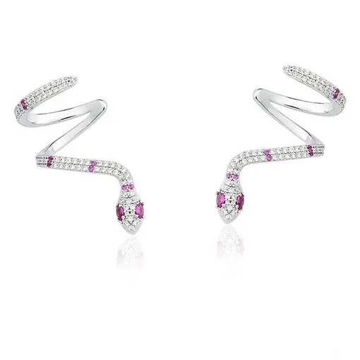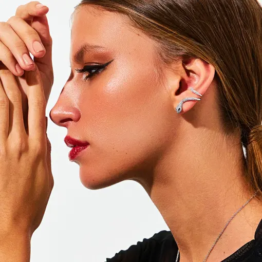 BRINCO CURVO DE COBRA COM ZIRCÔNIAS BRANCAS BANHADO A RÓDIO