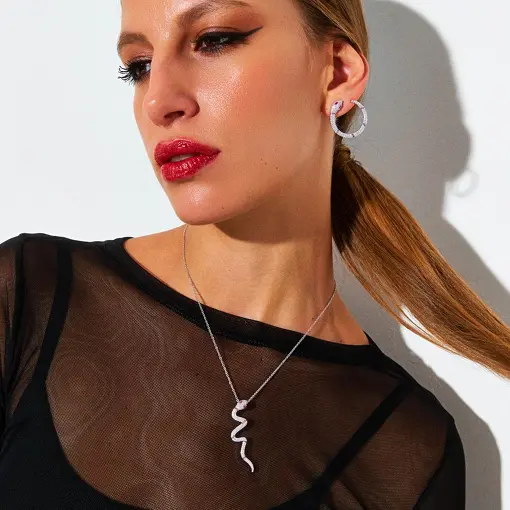 CORRENTE COM PINGENTE CABEÇA DE COBRA FOLHEADA A RÓDIO